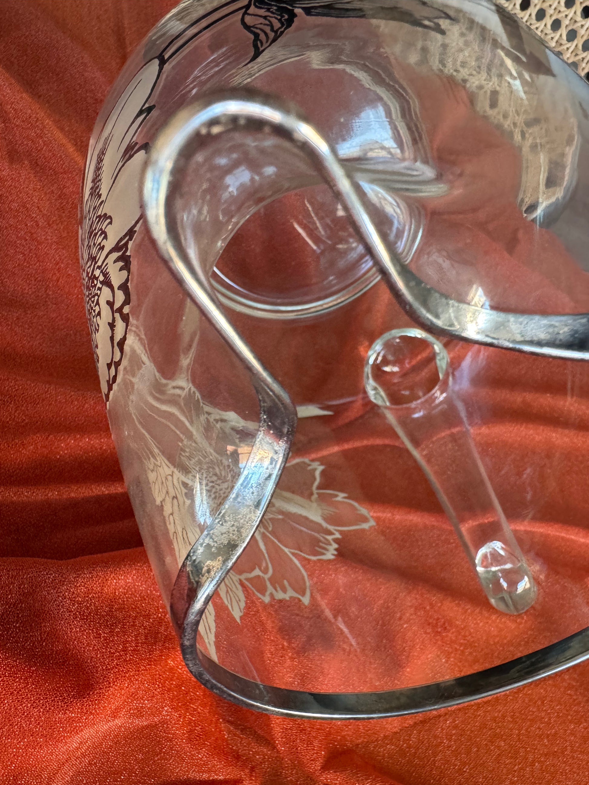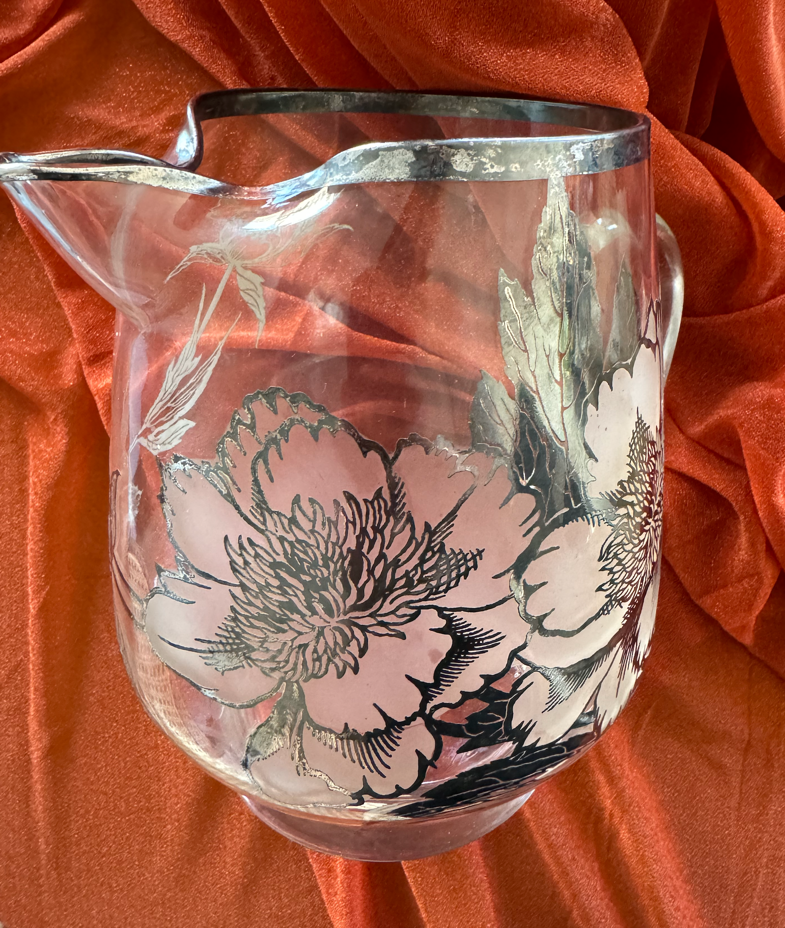 Designed by Rockwell Silver, floral sterling silver overlay, 1960's, water pitcher.